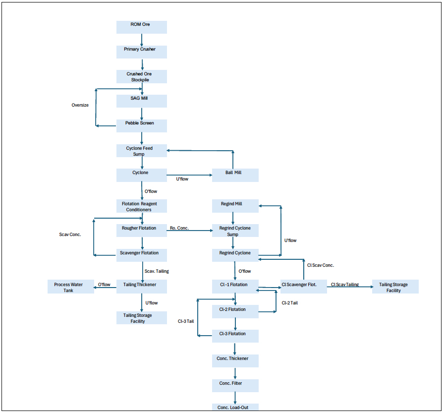 Extensive metallurgical test work has demonstrated that the contained copper and gold can be effectively recovered in a traditional flotation concentrator that would produce a single gold-bearing copper concentrate using industry-accepted technologies. The flowsheet includes primary crushing followed by grinding in a SAG (semi-autogenous grinding) mill/ball mill grinding circuit, rougher flotation, regrinding of the rougher concentrate and three stages of cleaner flotation. The concentrator would be constructed with a capacity to process 60,000 tpd and operated on a 365 day/year, 24 hour/day schedule. A simplified process flowsheet can be seen in Figure 4. LOM average recoveries for Cu, Au and Ag are 87.76%, 57% and 50% respectively. The grade of the concentrate produced is 26% for the LOM. Arsenic in the concentrate is expected to range from 0.5% to 2.2%. Aldebaran hired the CRU Group, a global leader in commodity research and market analysis, to complete a study analyzing the placement of arsenic-bearing concentrates into the marketplace, which showed that blending capacity for arsenic-bearing copper concentrates worldwide has increased materially in recent years, and penalties paid for arsenic-bearing concentrates have decreased substantially. The PEA utilizes CRU’s view on arsenic penalties.